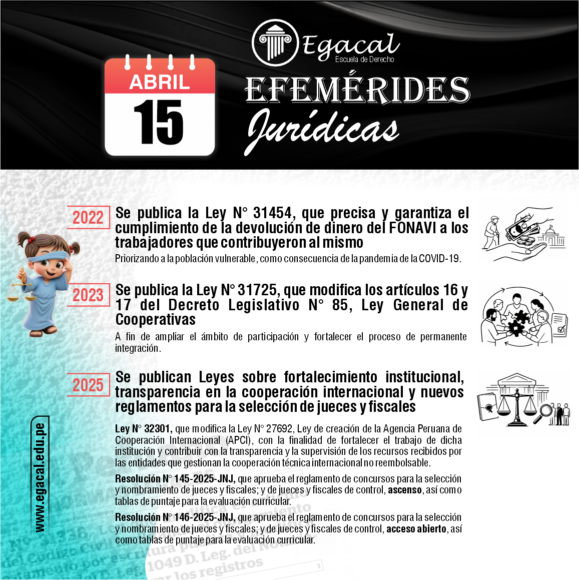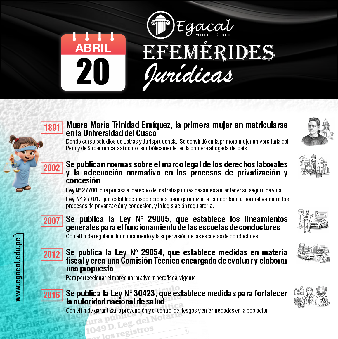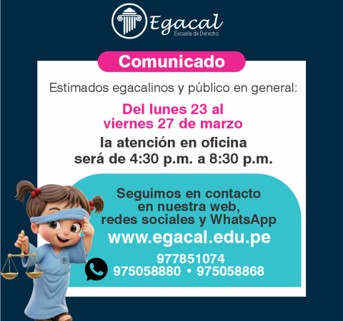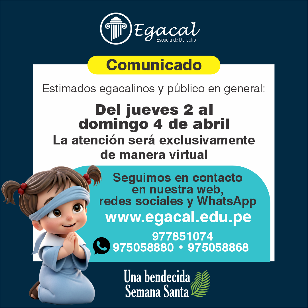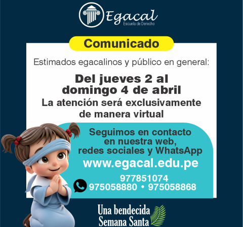 El avance tecnológico y la actual coyuntura requieren una transformación en la enseñanza del Derecho. Al convertirse la virtualidad de una alternativa a una necesidad, la Escuela de Derecho Egacal, con 26 años al servicio de la comunidad jurídica, afronta este nuevo desafío y propone una enseñanza netamente digital. A nuestra vocación por la enseñanza le agregamos un ambiente virtual adecuado sobre la base de nuestro ADN institucional: metodología y pasión por la enseñanza del Derecho.