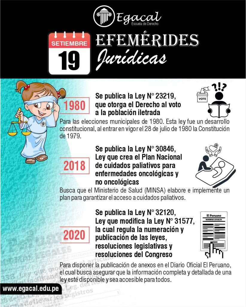 Se publica la Ley N° 23219, que otorga el derecho al voto a la población iletrada para las elecciones municipales de 1980. Esta ley fue un desarrollo constitucional, al entrar en vigor el 28 de julio de 1980 la Constitución de 1979.