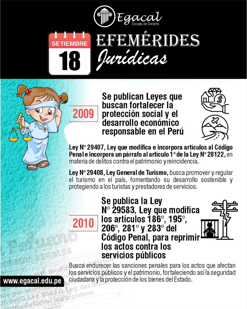 - Ley N° 29408, Ley General de Turismo. busca promover y regular el turismo en el país, fomentando su desarrollo sostenible y protegiendo a los turistas y prestadores de servicios.