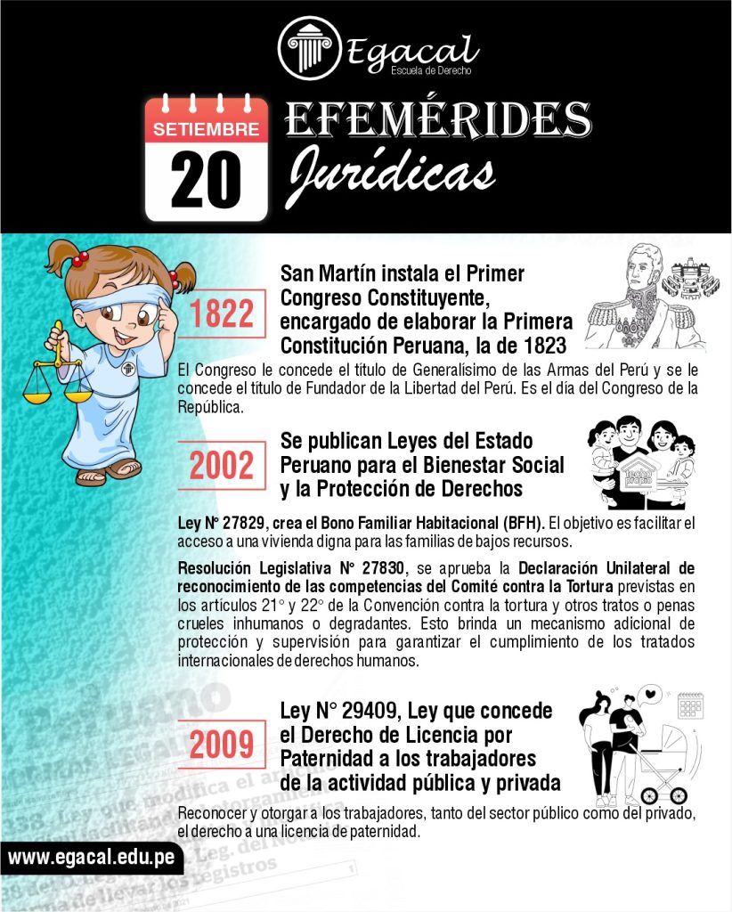 Se promulga el Estatuto Provisorio de 1822. Uno de los primeros cuerpos normativos del Perú independiente, actuando como una constitución provisional. Estableció principios básicos de gobierno y justicia mientras se preparaba la primera Constitución definitiva.