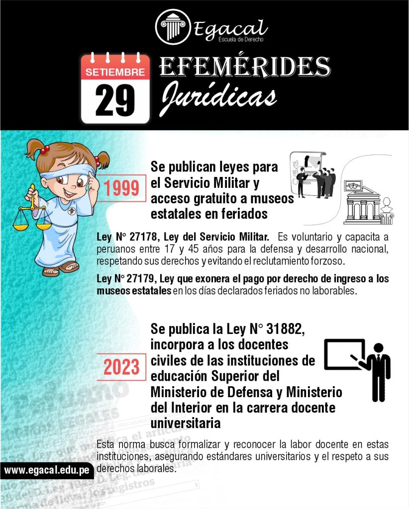 ► Se publica la Ley N° 27178, Ley del Servicio Militar. Es voluntario y capacita a peruanos entre 17 y 45 años para la defensa y desarrollo nacional, respetando sus derechos y evitando el reclutamiento forzoso.