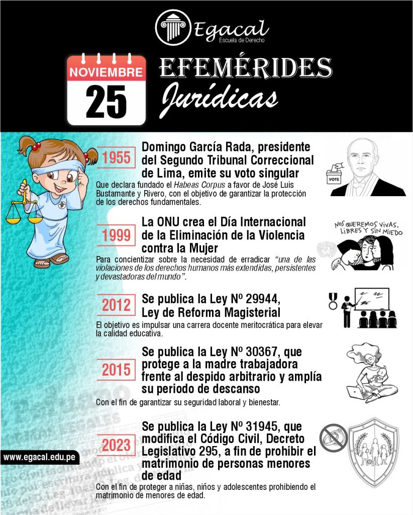 📌 1955: Domingo García Rada, presidente del Segundo Tribunal Correccional de Lima, emite su voto singular que declara fundado el Habeas Corpus a favor de José Luis Bustamante y Rivero, con el objetivo de garantizar la protección de los derechos fundamentales.