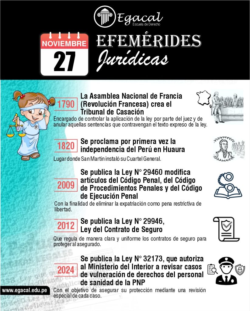 📌 27 DE NOVIEMBRE DE 1790: La Asamblea Nacional de Francia (Revolución Francesa) crea el Tribunal de Casación, encargado de controlar la aplicación de la ley por parte del juez y de anular aquellas sentencias que contravengan el texto expreso de la ley.