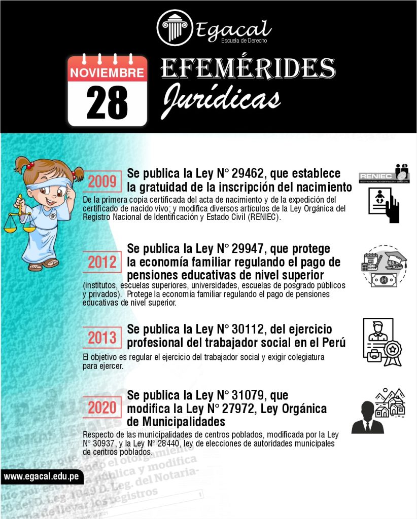 📌 2009: Se publica la Ley N° 29462, que establece la gratuidad de la inscripción del nacimiento, de la primera copia certificada del acta de nacimiento y de la expedición del certificado de nacido vivo; y modifica diversos artículos de la Ley Orgánica del Registro Nacional de Identificación y Estado Civil (RENIEC).