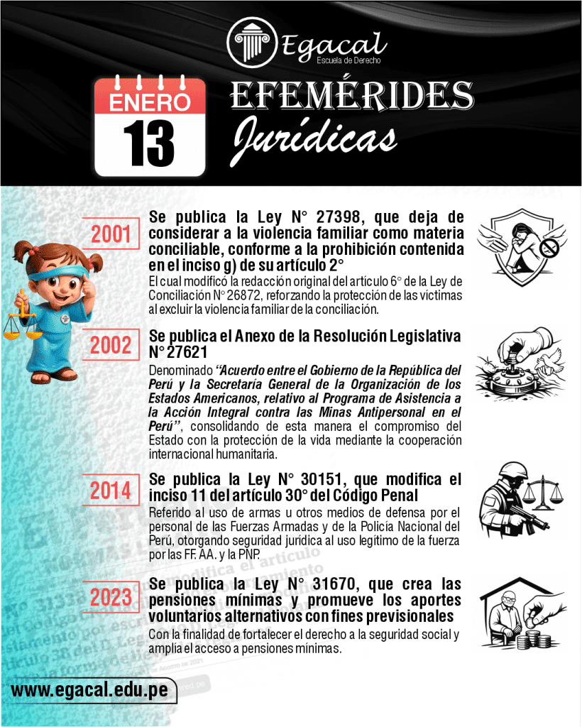 ๐ 2013: Se publica la Ley Nยฐ 29990, que elimina la conciliaciรณn en los procesos de violencia familiar, priorizando la tutela efectiva de las vรญctimas, reconociendo la desigualdad estructural y garantizando una respuesta estatal mรกs protectora.