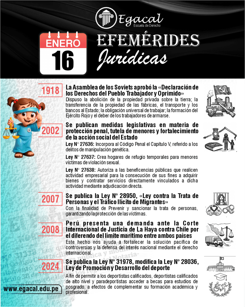 ๐ 1924: Se promulga la Ley Nยฐ 4891, ยซLey de Vaganciaยป, con la finalidad de controlar la vagancia y preservar el orden pรบblico.