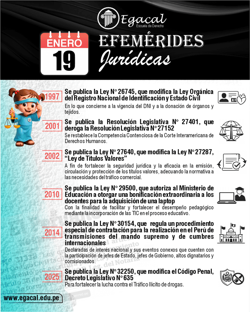 ๐ 2019: Se publica la Ley Nยฐ 30909, que modifica la Ley Nยฐ 27995, estableciendo procedimientos para asignar bienes dados de baja a centros educativos de zonas de extrema pobreza, contribuyendo a la equidad y el acceso a recursos educativos.