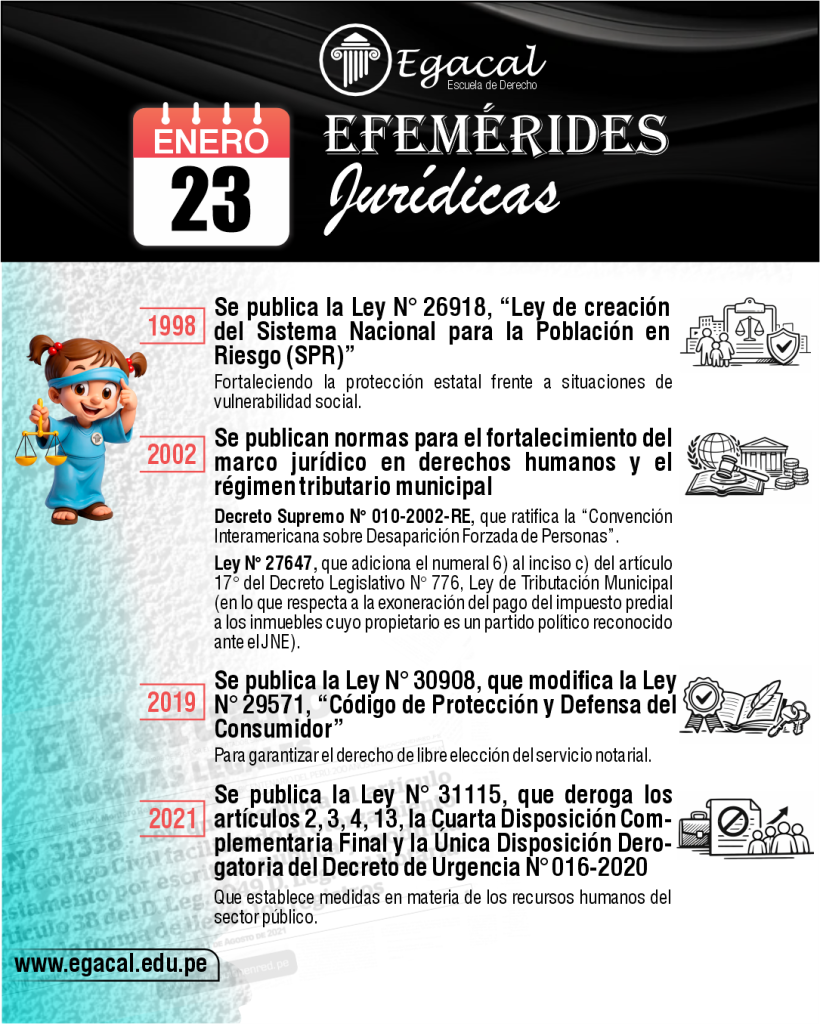 ๐ 1998: Se publica la Ley Nยฐ 26918, โLey de creaciรณn del Sistema Nacional para la Poblaciรณn en Riesgo (SPR)โ, fortaleciendo la protecciรณn estatal frente a situaciones de vulnerabilidad social.