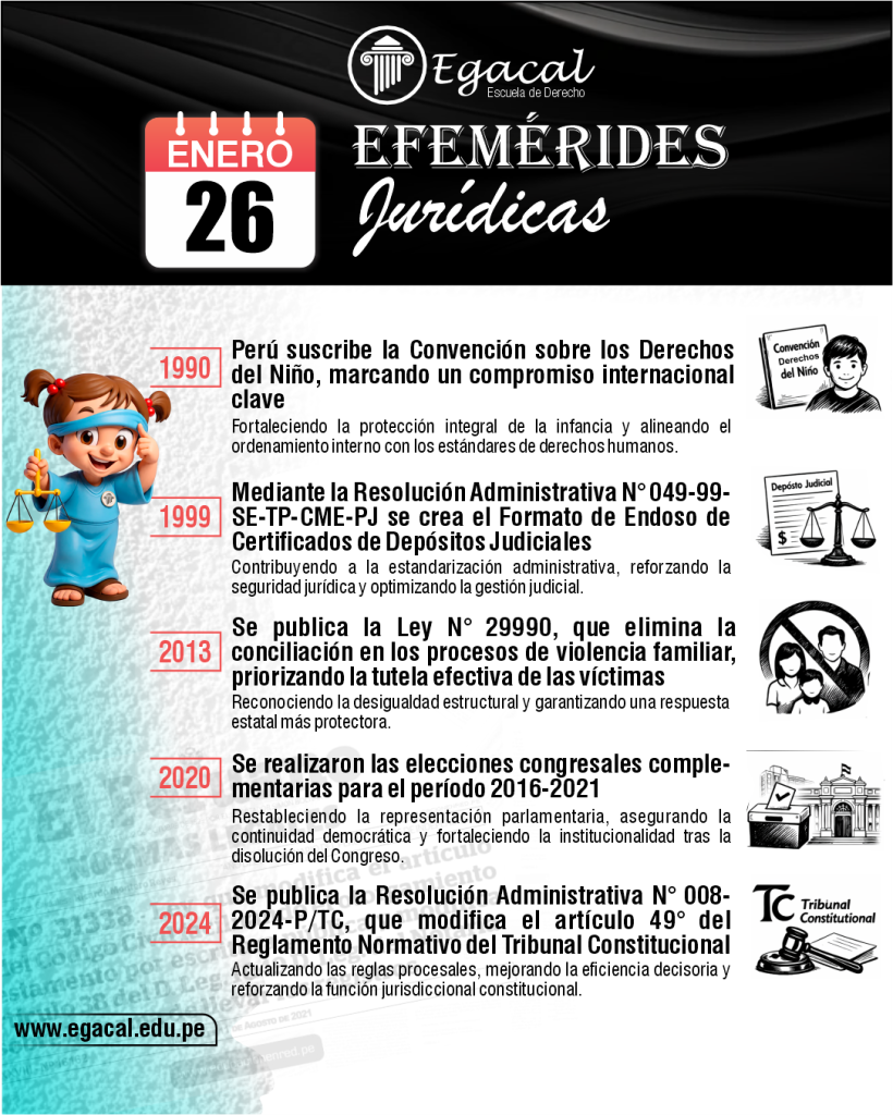 ๐ 2024: Se publica la Resoluciรณn Administrativa Nยฐ 008-2024-P/TC, que modifica el artรญculo 49ยฐ del Reglamento Normativo del Tribunal Constitucional, actualizando las reglas procesales, mejorando la eficiencia decisoria y reforzando la funciรณn jurisdiccional constitucional.