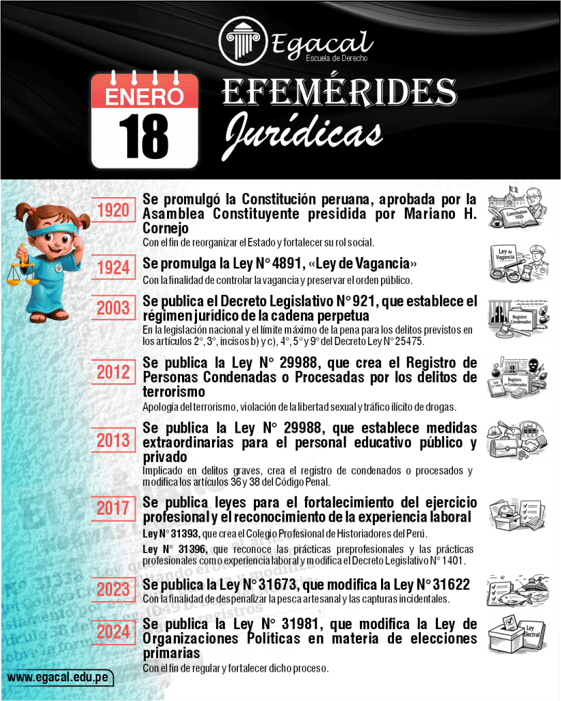 ๐ 1920: Se promulgรณ la Constituciรณn peruana, aprobada por la Asamblea Constituyente presidida por Mariano H. Cornejo, con el fin de reorganizar el Estado y fortalecer su rol social.