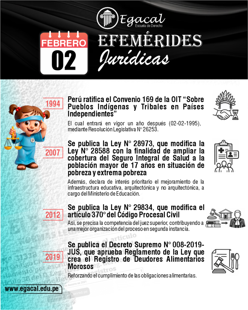 ๐ 2019: Se publica el Decreto Supremo Nยฐ 008-2019-JUS, que aprueba Reglamento de la Ley que crea el Registro de Deudores Alimentarios Morosos, reforzando el cumplimiento de las obligaciones alimentarias.