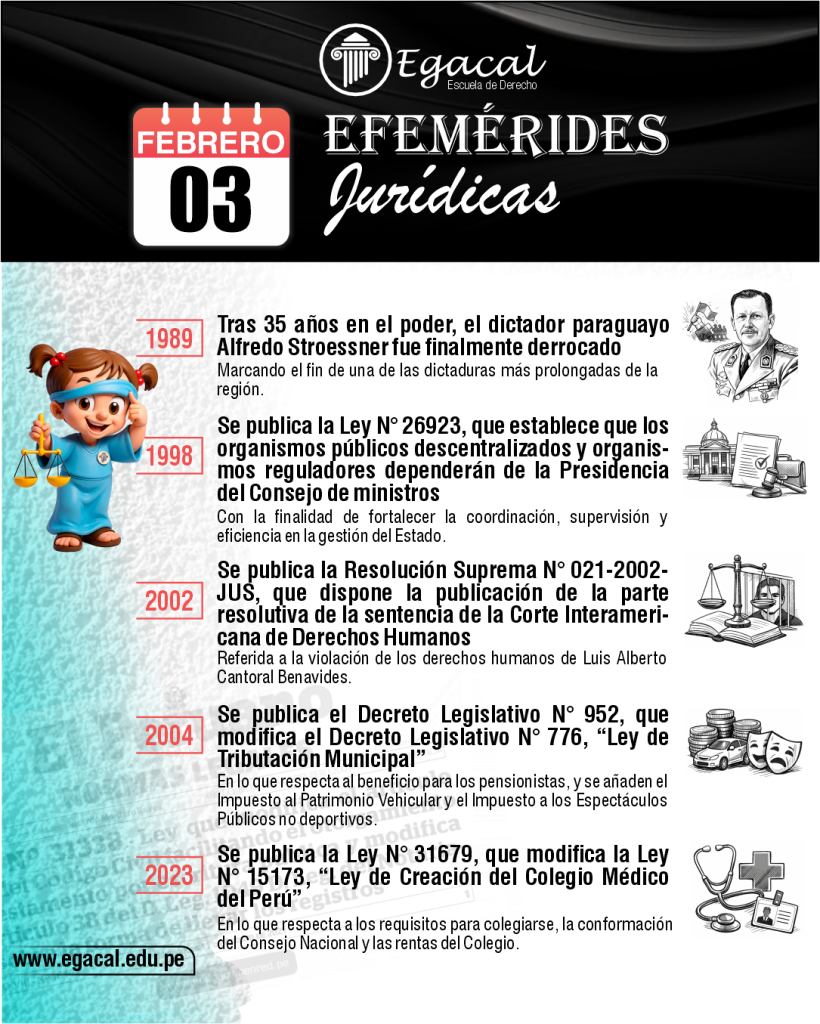 ๐ 2023: Se publica la Ley Nยฐ 31679, que modifica la Ley Nยฐ 15173, โLey de Creaciรณn del Colegio Mรฉdico del Perรบโ, en lo que respecta a los requisitos para colegiarse, la conformaciรณn del Consejo Nacional y las rentas del Colegio.