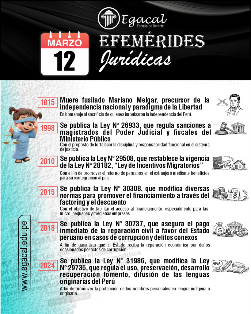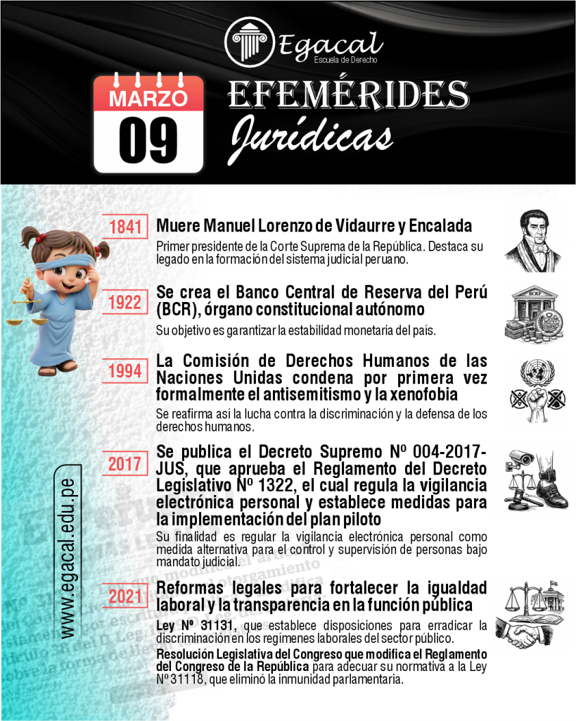 ๐ 1841: Muere Manuel Lorenzo de Vidaurre y Encalada, primer presidente de la Corte Suprema de la Repรบblica. Destaca su legado en la formaciรณn del sistema judicial peruano.
