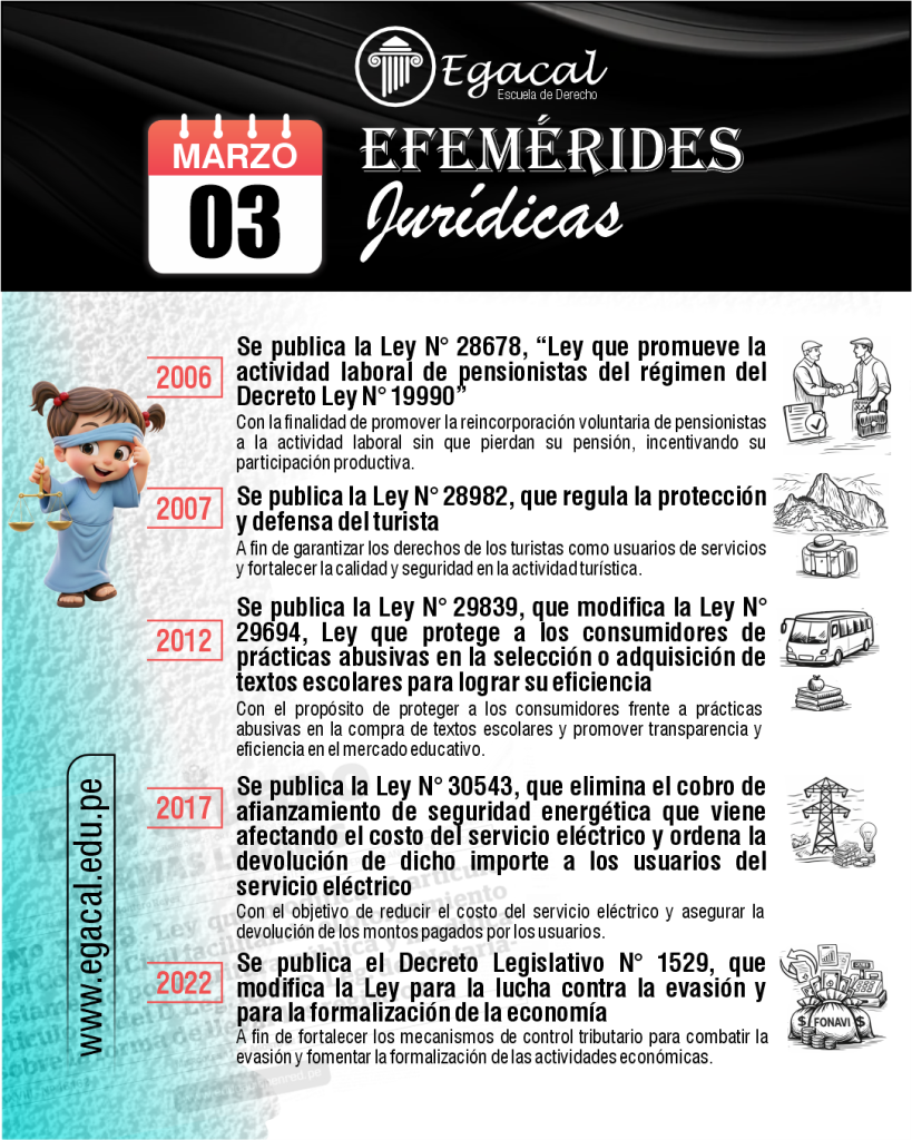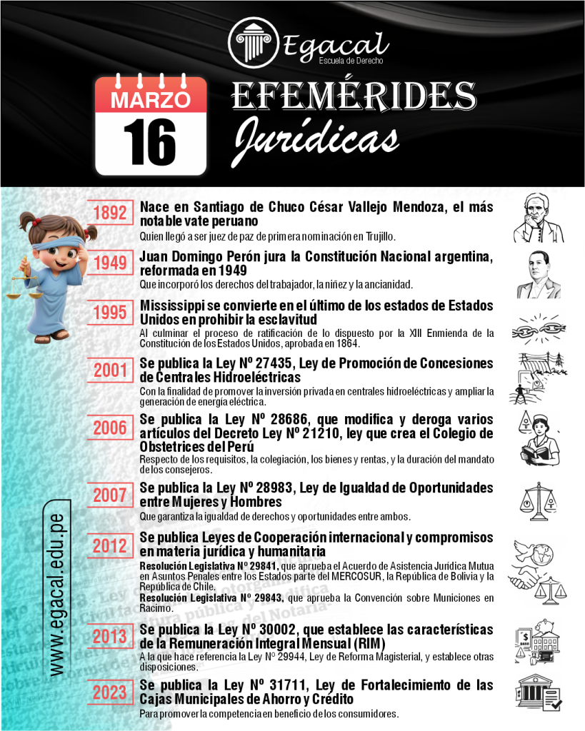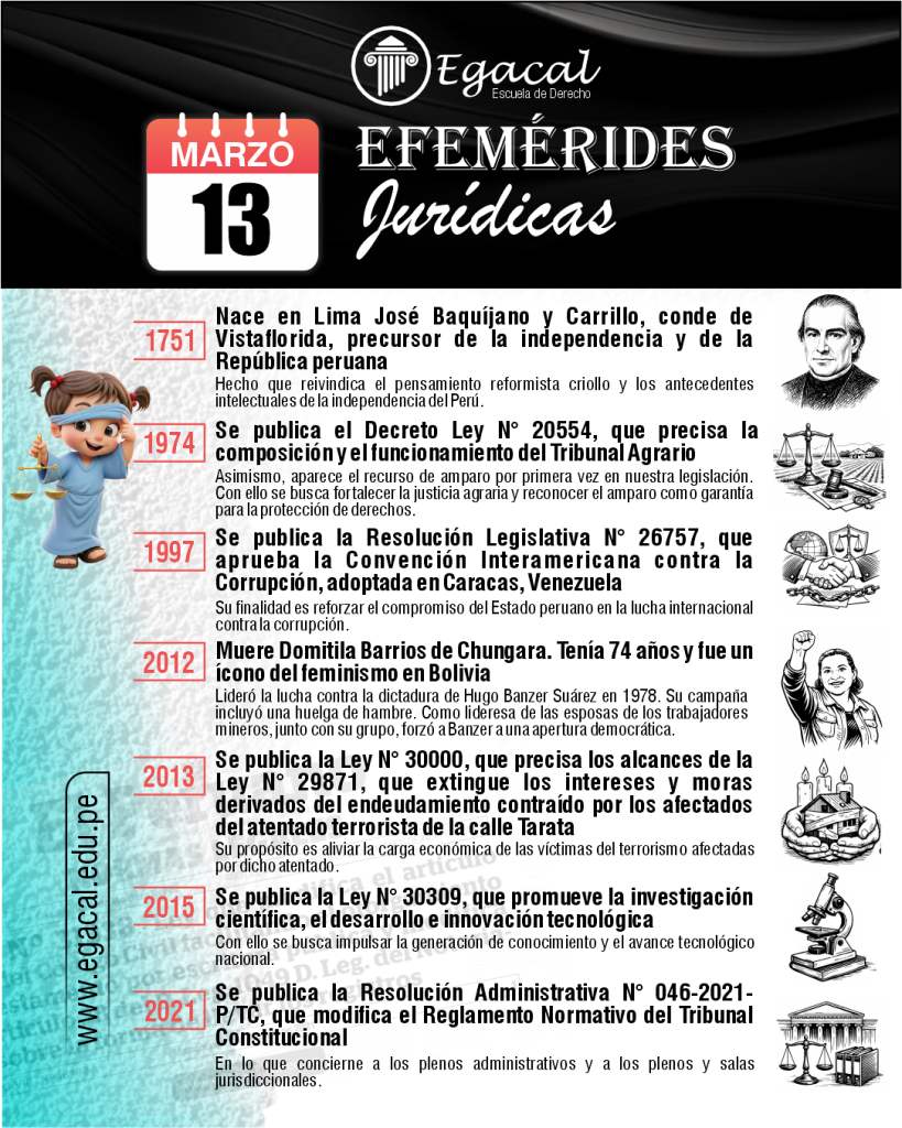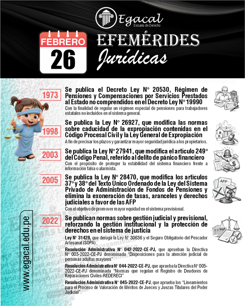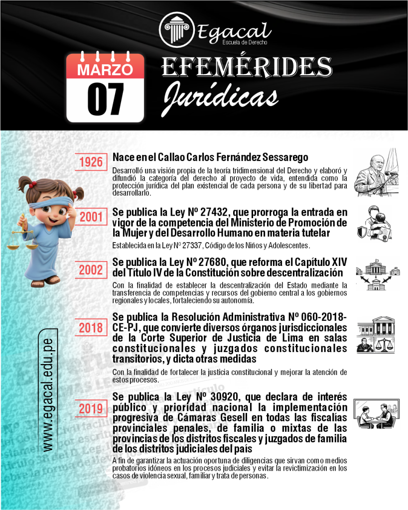 ๐ 1926: Nace en el Callao Carlos Fernรกndez Sessarego. Desarrollรณ una visiรณn propia de la teorรญa tridimensional del Derecho y elaborรณ y difundiรณ la categorรญa del derecho al proyecto de vida, entendida como la protecciรณn jurรญdica del plan existencial de cada persona y de su libertad para desarrollarlo.