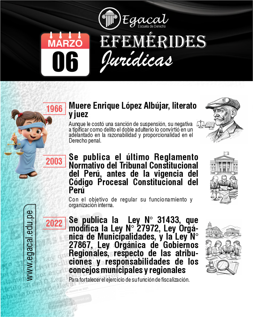๐ 1966: Muere Enrique Lรณpez Albรบjar, literato y juez. Aunque le costรณ una sanciรณn de suspensiรณn, su negativa a tipificar como delito el doble adulterio lo convirtiรณ en un adelantado en la razonabilidad y proporcionalidad en el Derecho penal.